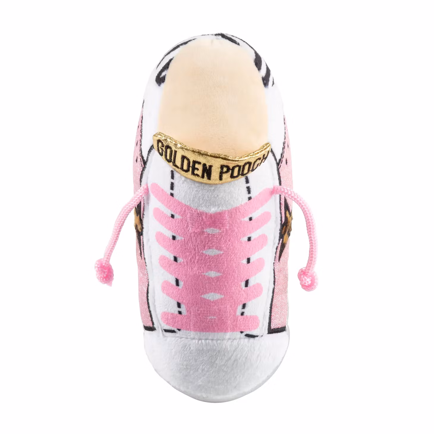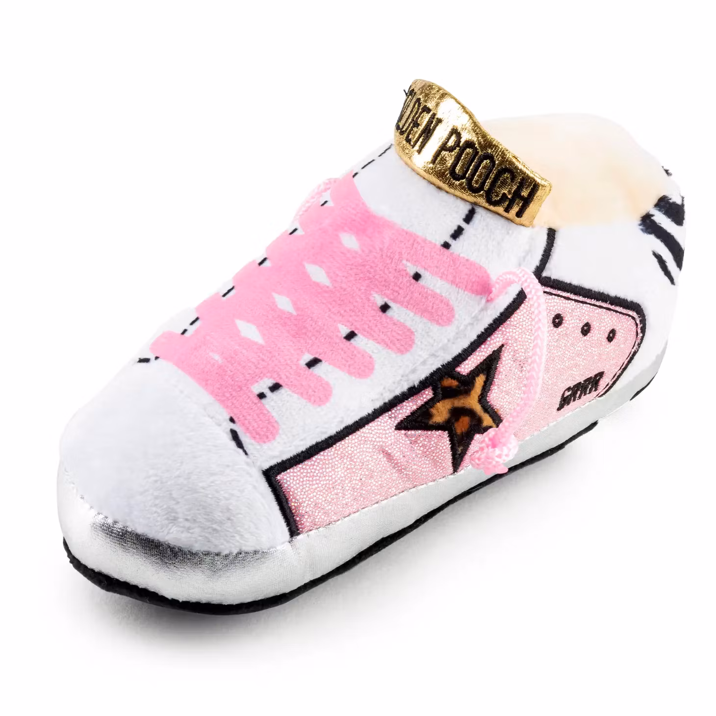 Köp den snyggaste sneakerleksaken! Parodileksak på den ikoniska tennisskon är inte bara hänförande, den lockar även till roliga lekar. Låt din lilla fashionista ta språng i nya Golden Pooch Pink Tennis Shoe - Nu även i rosa