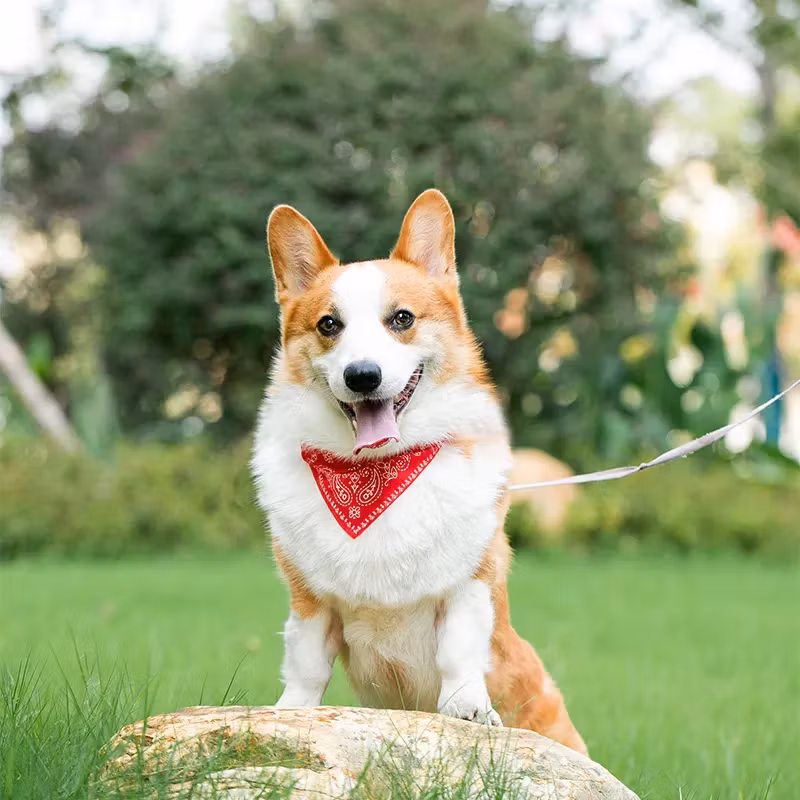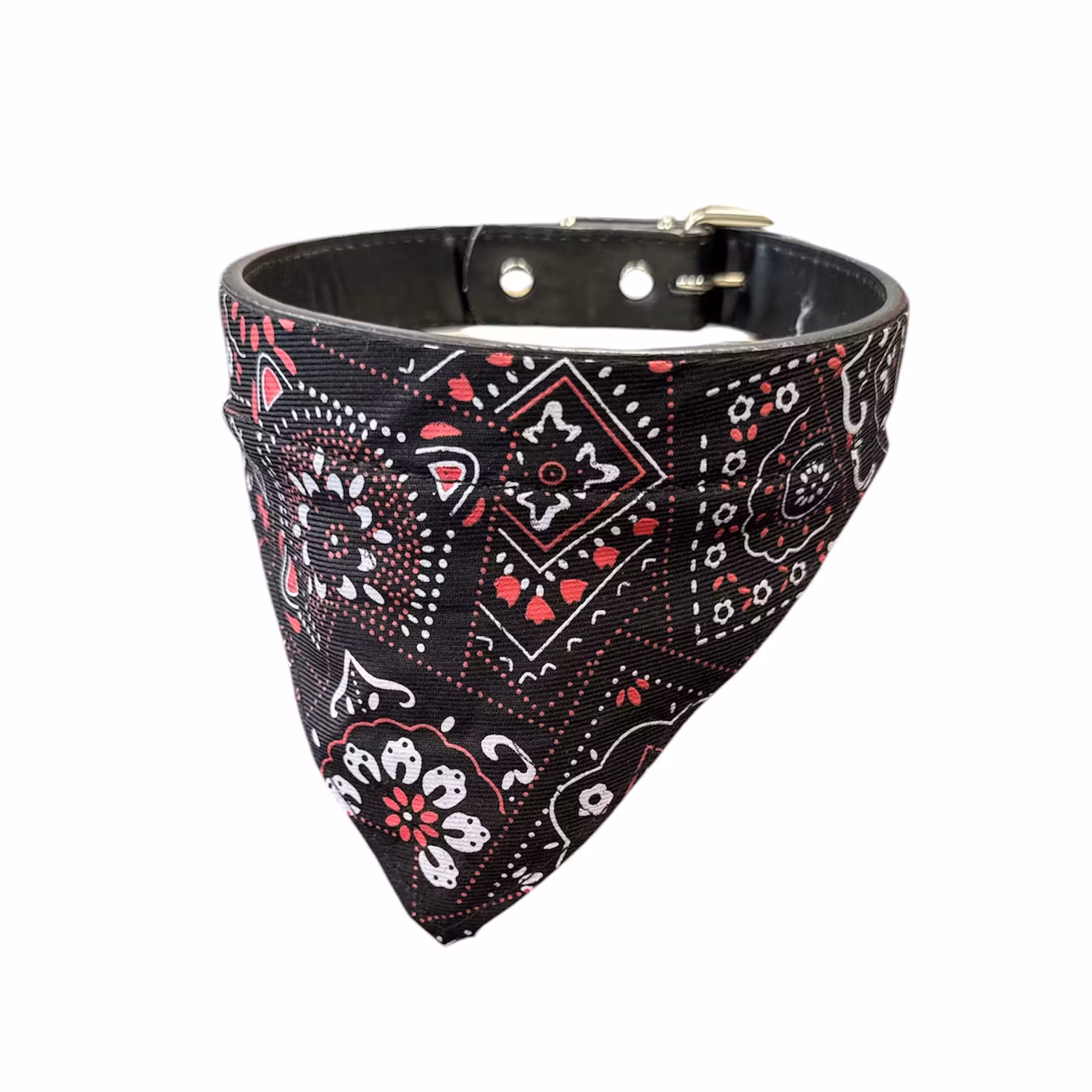 Uttryck din hunds personlighet med våra snygga och bekväma justerbara hundbandanas. Tillverkade av mjukt, andningsbart tyg i tufft paisleymönster. Halsbandet är tillverkat av slitstarkt PU-läder, som erbjuder både stabilitet och komfort runt ditt husdjurs hals.