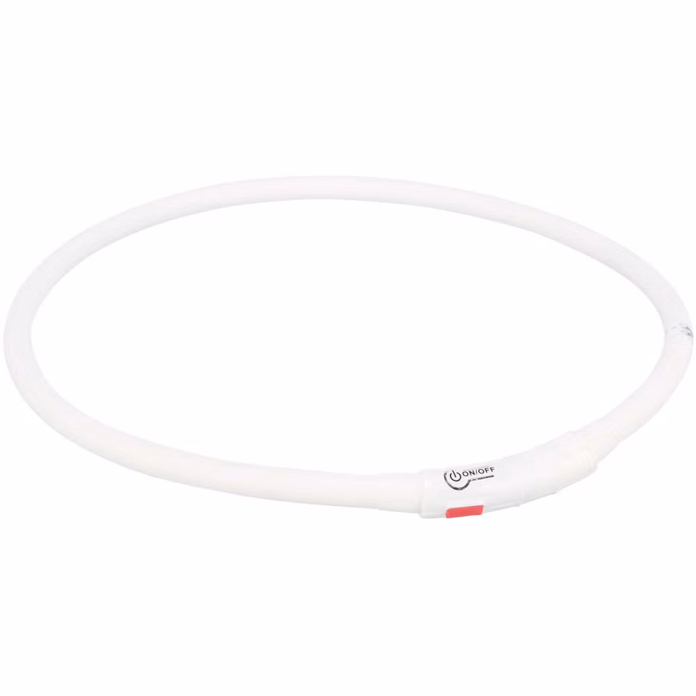 Tillverkad av silikon/plast. Ett "brottsäkert" halsband med klicklås. Går att ladda med den medföljande USB-kabeln. Går enkelt att korta av till önskad storlek. Ca 3,5 timmar blinkande ljus eller ca 1,5 timmar kontinuerligt ljus. USB-kabel och skruvmejsel ingår. Vattentåligt.