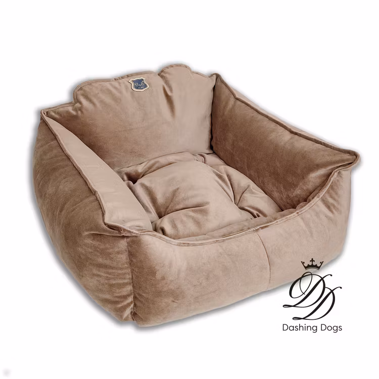 Härlig hundbädd i mjuk och skön sammet. Bädden är välstoppad och fin och har en löstagbar bottendyna.