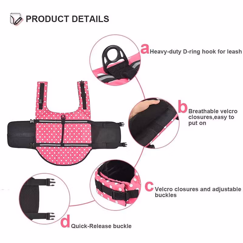 - Lyfthandtag: Varje flytväst är utrustad med ett lyfthandtag, vilket gör det enkelt att hjälpa ditt husdjur i och ur vattnet.