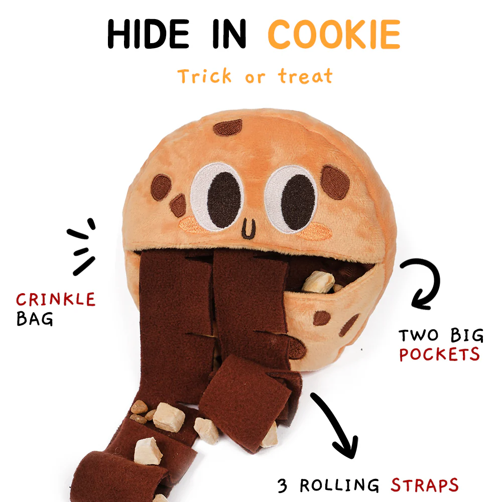 Freaky Cookie Nose Work Toy är en rolig och aktiverande hundleksak som väcker din hunds naturliga sökbeteende. Med sin lekfulla design och tre långa “tungor” blir den snabbt en favorit i leksakslådan.
