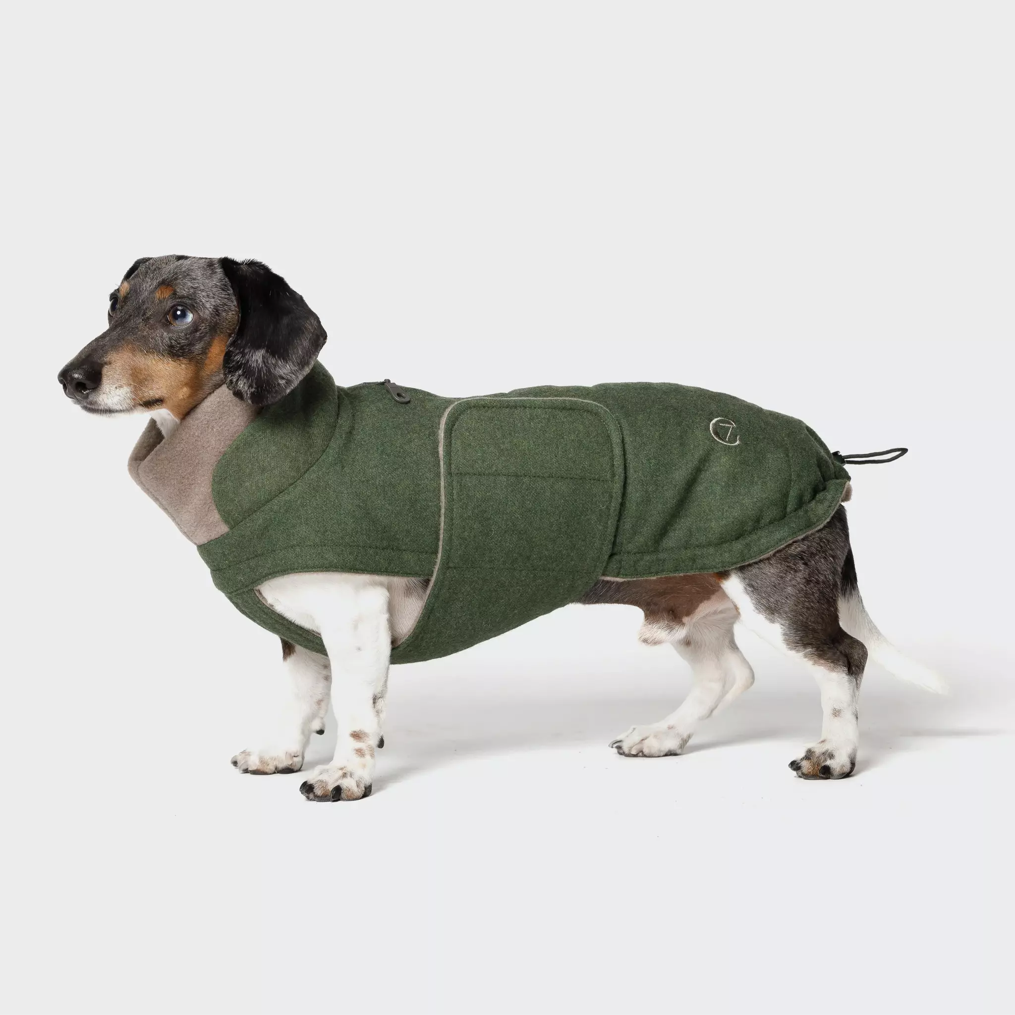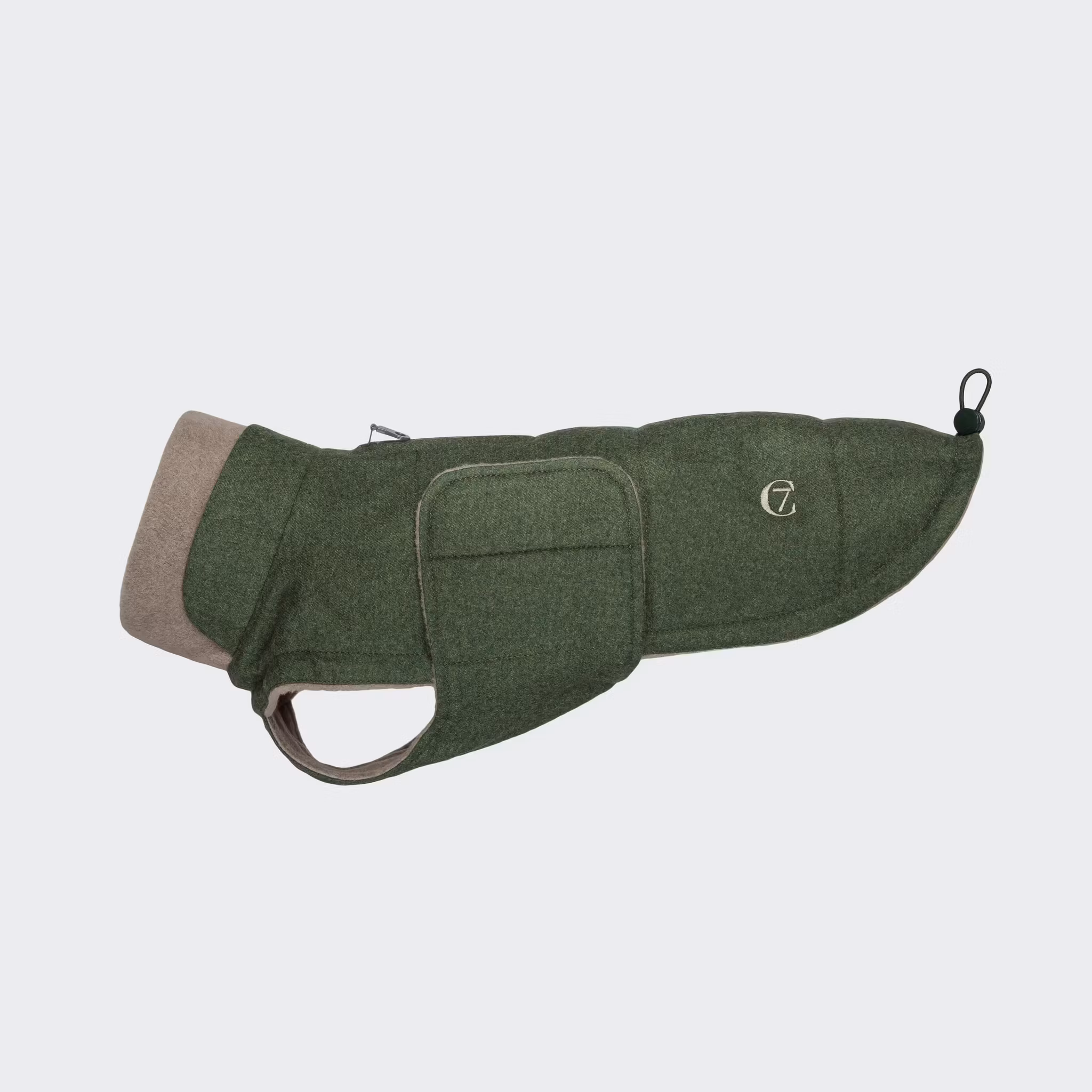 Täcket är fodrat med mjuk och varm fleece som skyddar mage, rygg och känsliga organ under kalla dagar. Yttertyget i slitstark ullblandning är mycket vattenavvisande och står emot både regn och rusk. Den mörkgröna färgen ger en stilren och tidlös känsla som passar perfekt under höst och vinter.