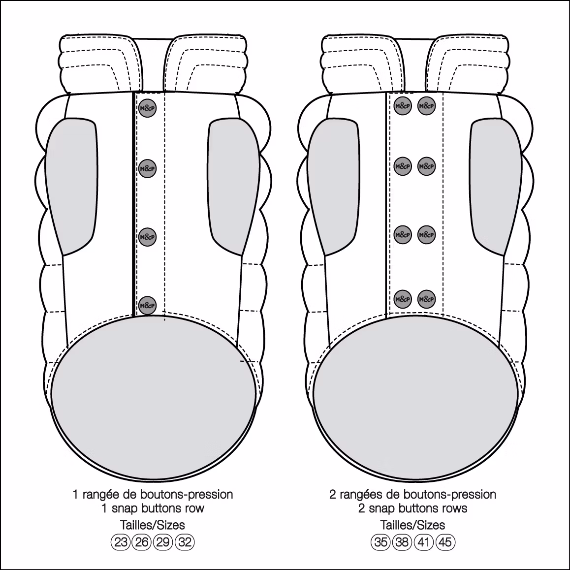 - Stängs under magen med gyllene tryckknappar graverade "M&P"